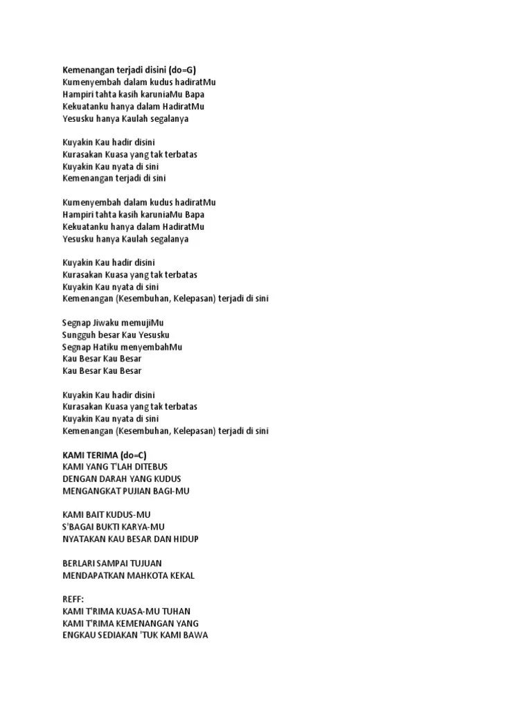 Ku yakin kau nyata di sini. Lirik dan chord lagu rohani gms live kemenangan terjadi di sini. Ku menyembah dalam kudus hadirat mu hampiri tahta kasih karunia mu bapa kekuatan ku hanya dalam . Lirik lagu kemenangan terjadi di sini feat. Lirik kemenangan terjadi di sini.