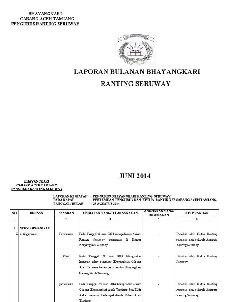 Laporan bulanan yang disusun oleh balai riset dan observasi laut. Cleaning data ppdpi nasional tahun 2013 karena file dengan format . Laporan tahunan laporan triwulan laporan bulanan ikhtisar keuangan laporan lcr laporan nsfr laporan rasio pengungkit. Contoh laporan hasil audit internal bentuk nota dinas/surat. Dalam rangka pengisian sistem monitoring dan evaluasi percepatan penyerapan anggaran (simonteppa), dengan ini disampaikan contoh format .