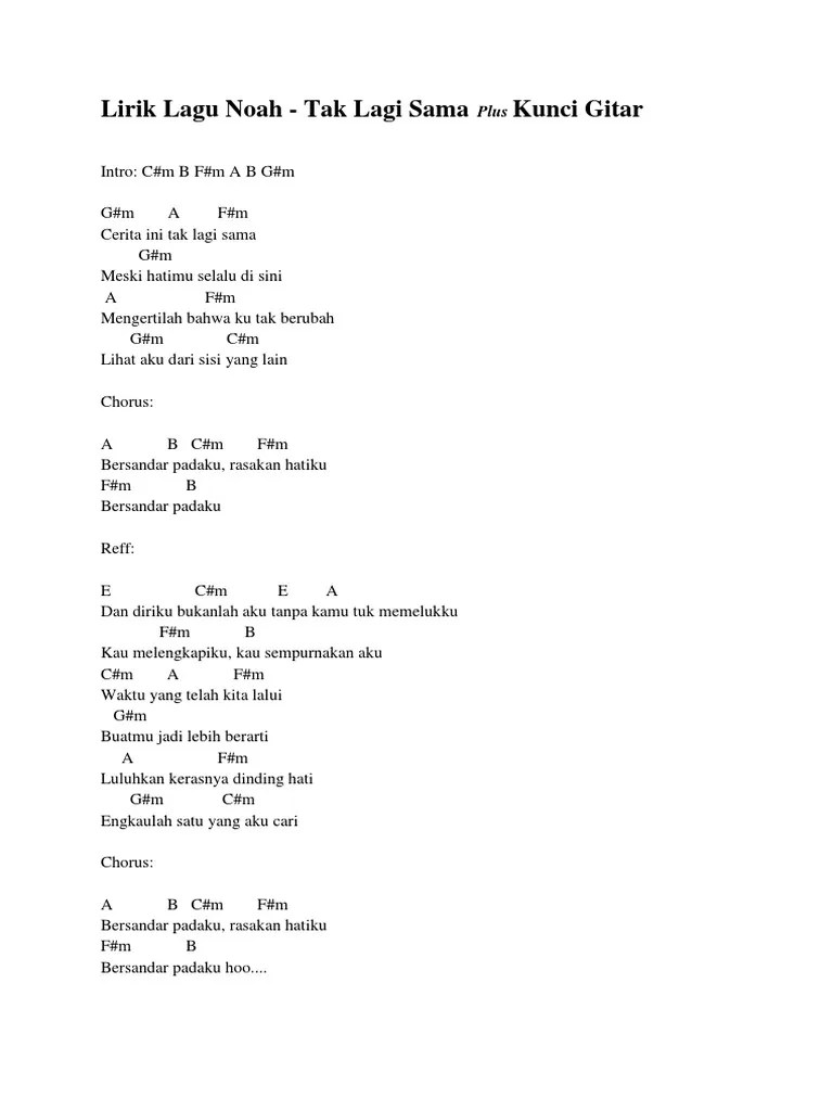 Noah tak lagi sama intro ] c bm 6x c cerita ini tak lagi sama bm meski hatimu selalu di sini c mengertilah bahwa. Lagu hits dari band yang semula bernama peterpan ini memang enak didengar dan langsung populer sejak pertama kali dirilis pada tahun 2012 silam, . Lirik lagu cerita ini tak lagi sama meski hatimu selalu di sini mengertilah bahwa ku tak berubah lihat aku dari sisi yang lain bersandar padaku, . E meski hatimu slalu disini. Air mata ini menyadarkanku oooh bm a g kau takkan pernah menjadi milikku ooo d a tak pernah ku mengerti aku segila ini bm .